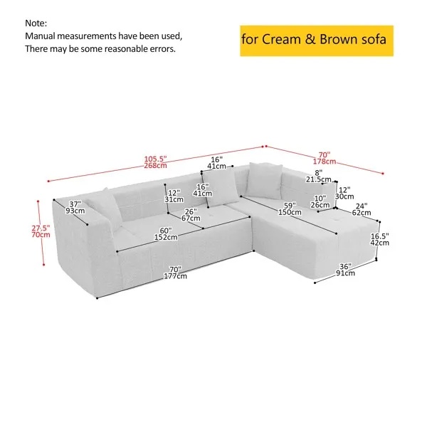 Modular L-Shaped Sectional Floor Couch, Deep Seat Tufted Comfy Sofa Set With Chaise For Living Room